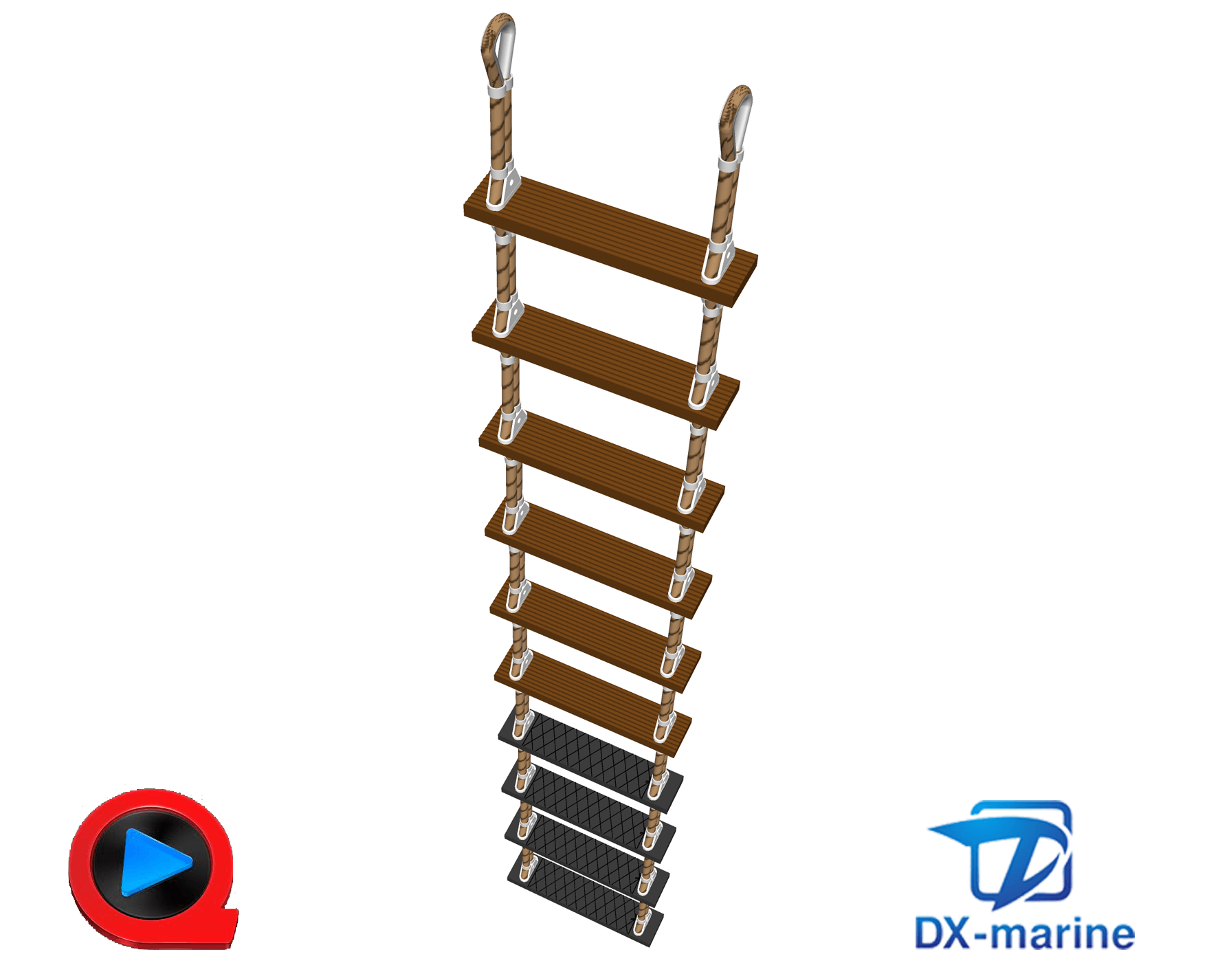 Apply a static load of 8.8kN widely distributed over the bottom step for a period of at least 1 min, so that the load is applied evenly between the side ropes through the step attachment fittings.Steps shall not break or crack. Attachments between any step and a side rope shall not loosen or break. Side ropes shall not sustain any observable damage, elongation, or deformation that remains after the test load is removed.