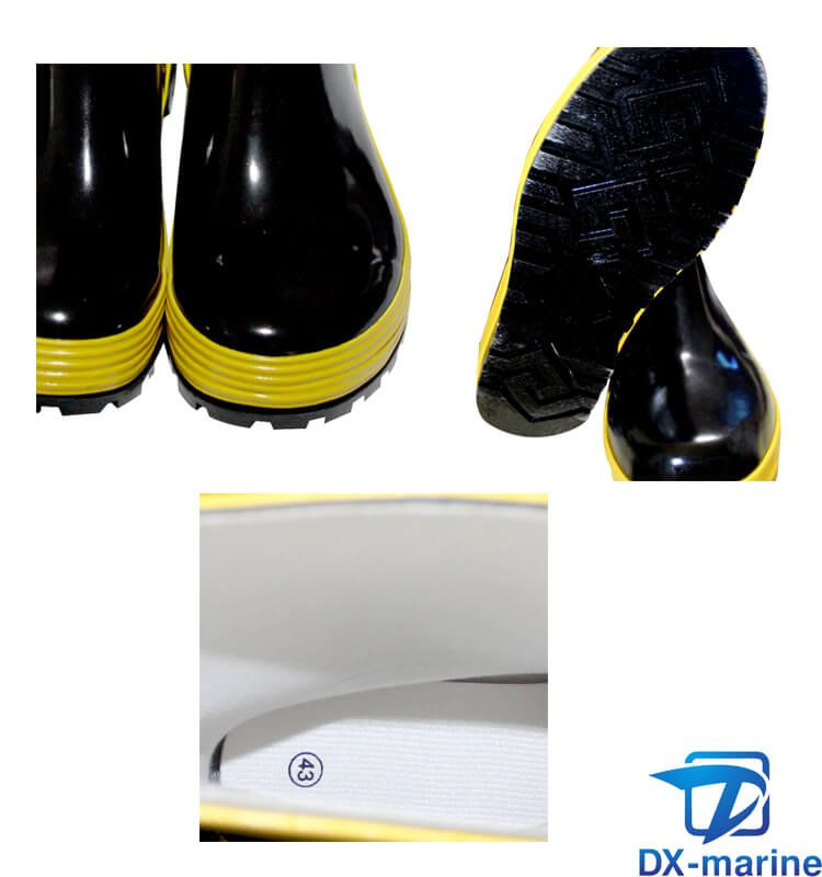 The boots weigh about 2.2 kg. Made of fire-retardant rubber, non-slip, anti-static, fireproof, waterproof, oil-resistant, anti smashing and anti puncture. There is a thin steel plate embedded in the bottom of the boots. It has good protection for ankle and feet. The interior of the sole is a lining of sterilized canvas and lined with a sponge bottom. The above products are all in line with national standards and can be used in conjunction with fireman's insulation clothing and chemical protective clothing.